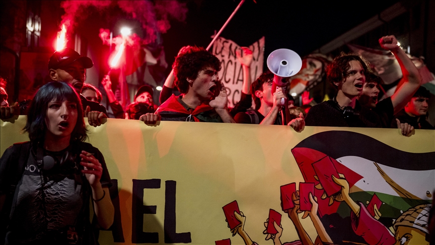 وردد المشاركون في الاحتجاجات قبل المباراة شعارات مثل “الحرية لفلسطين” و”قاطعوا إسرائيل”، ورفعوا الأعلام الفلسطينية ولافتات كتبت عليها عبارات من قبيل “فلسطين حرة” و”إسرائيل التي تمارس الإبادة الجماعية”، وفق مراسل الأناضول.